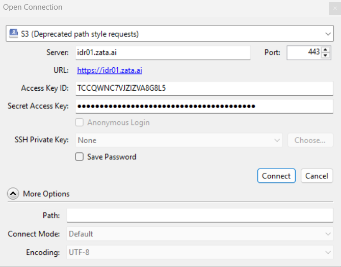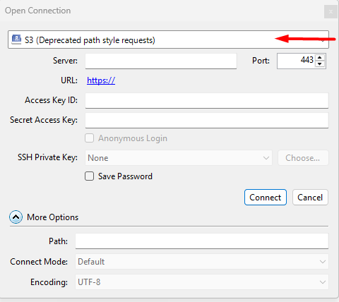 Choose the S3(Deprecated path style requests)