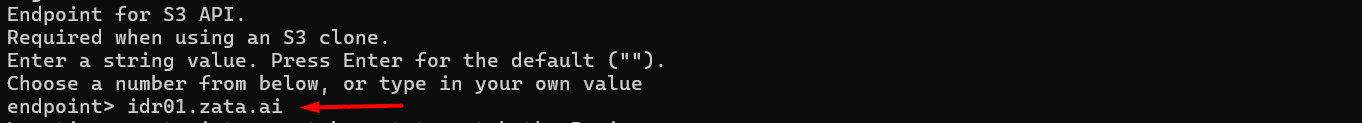 Endpoint for S3 API. Required when using an S3 clone. Enter a string value. Press Enter for the default. Choose a number from below, or type in your value