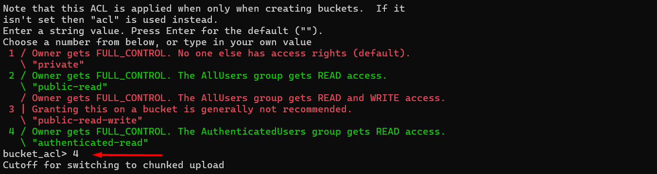 Note that this ACL is applied only when creating buckets.